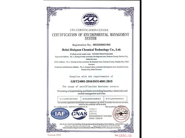 環(huán)境管理體系認(rèn)證證書 (英文版)